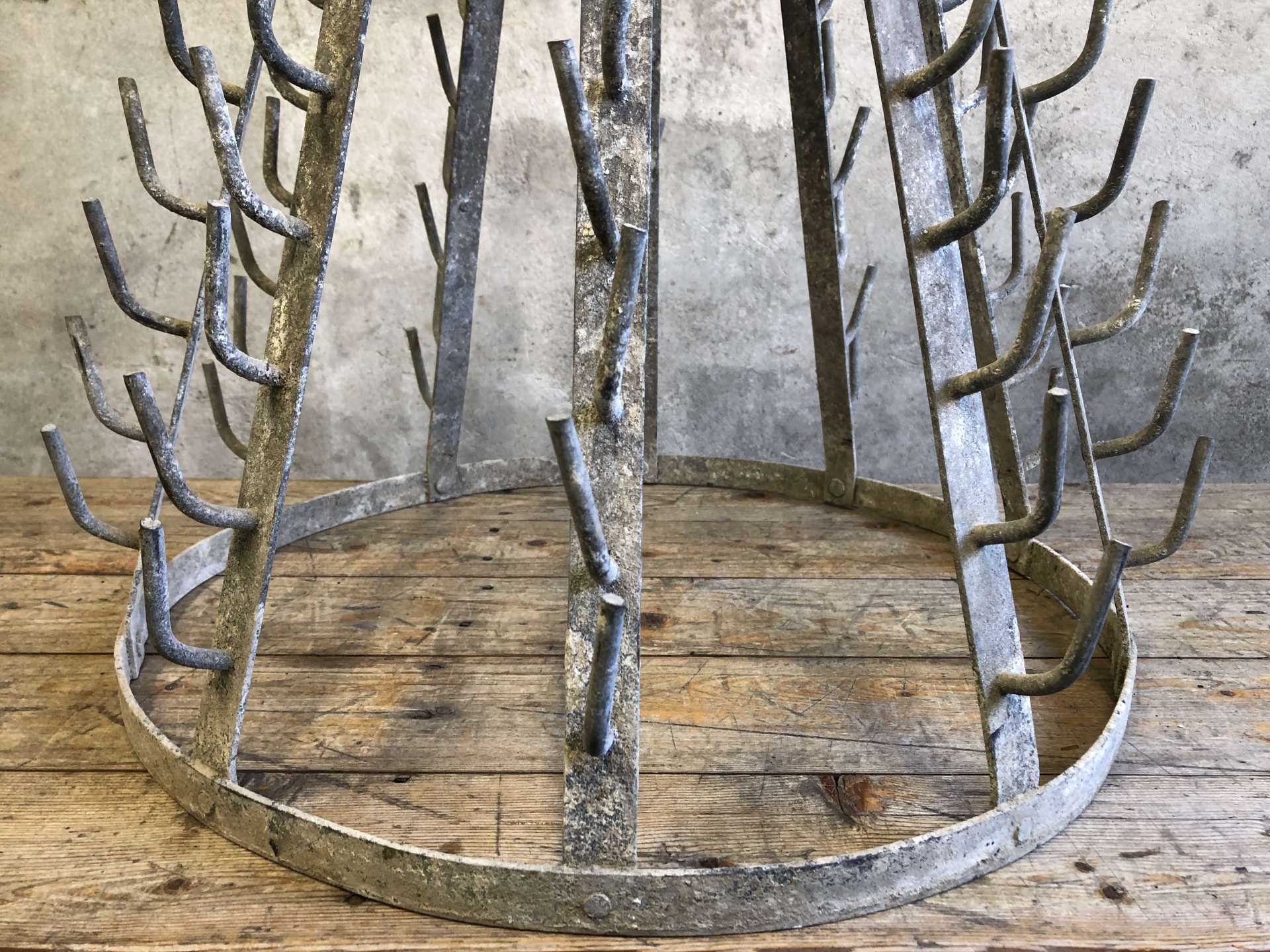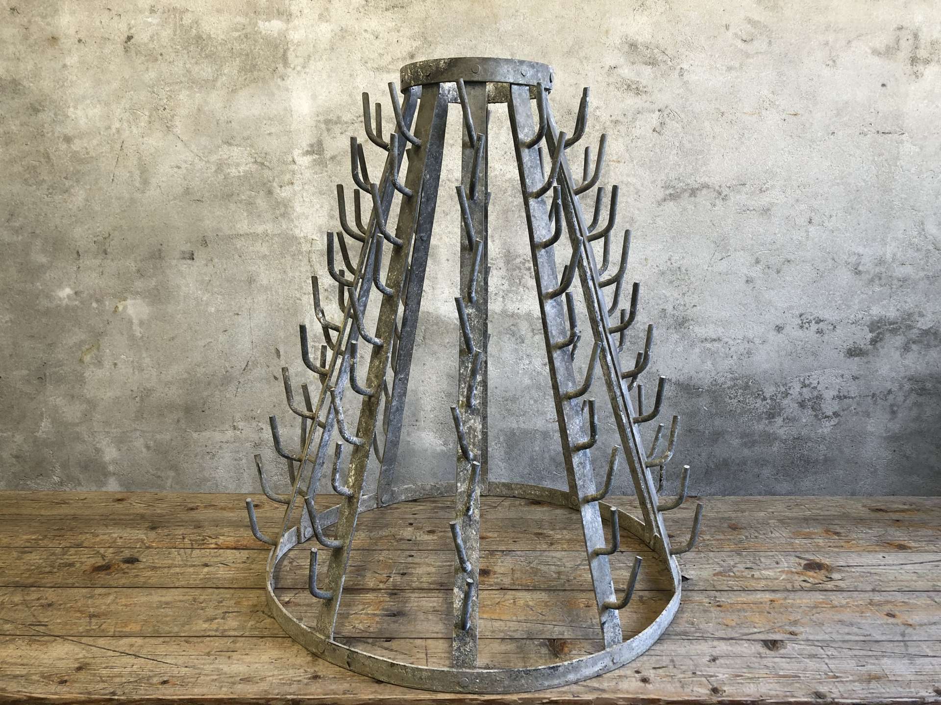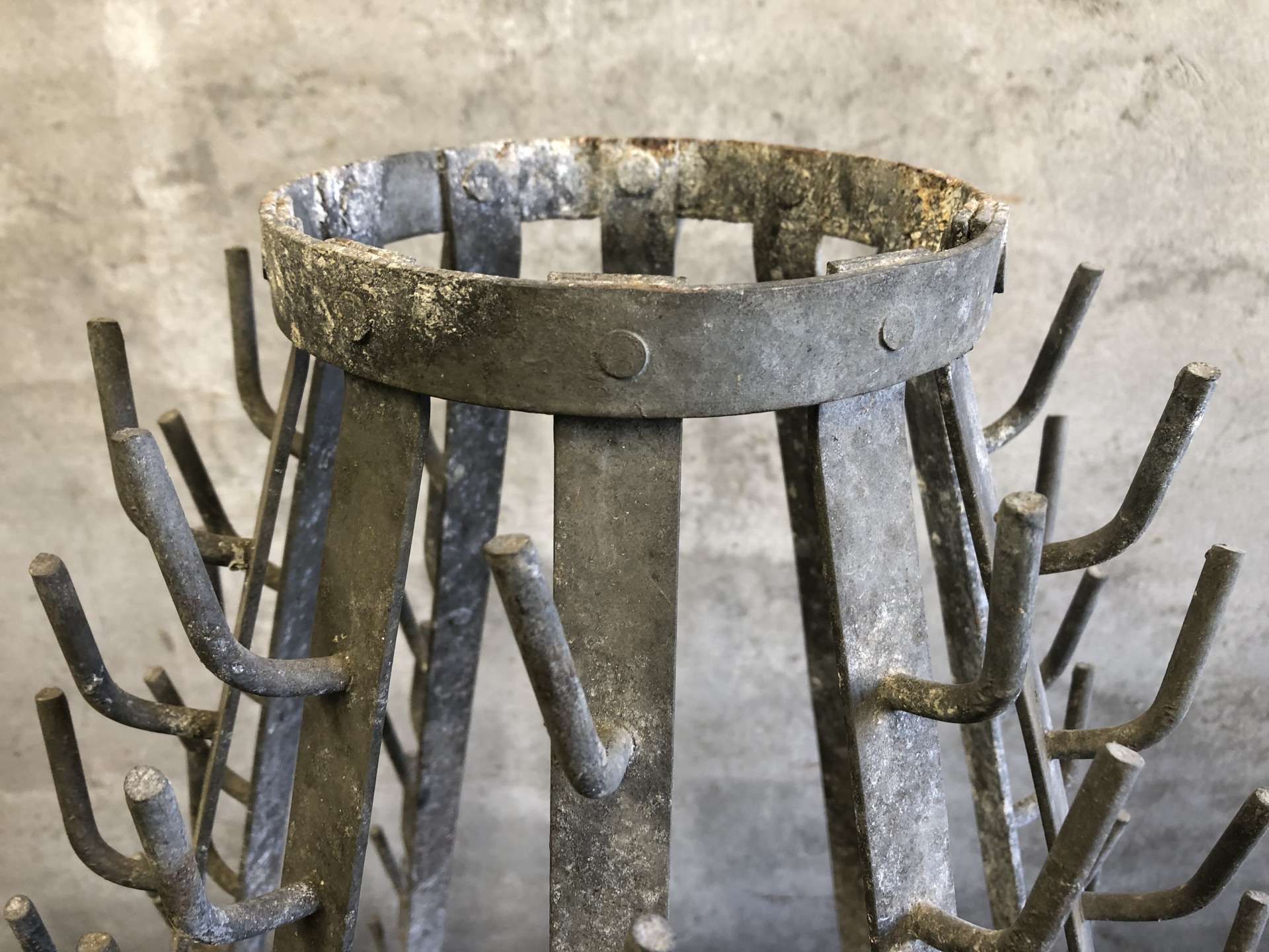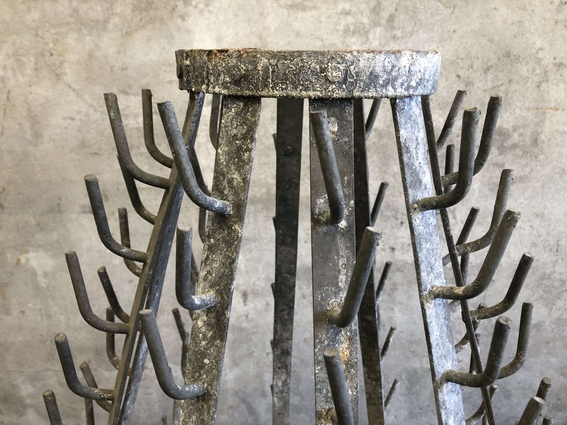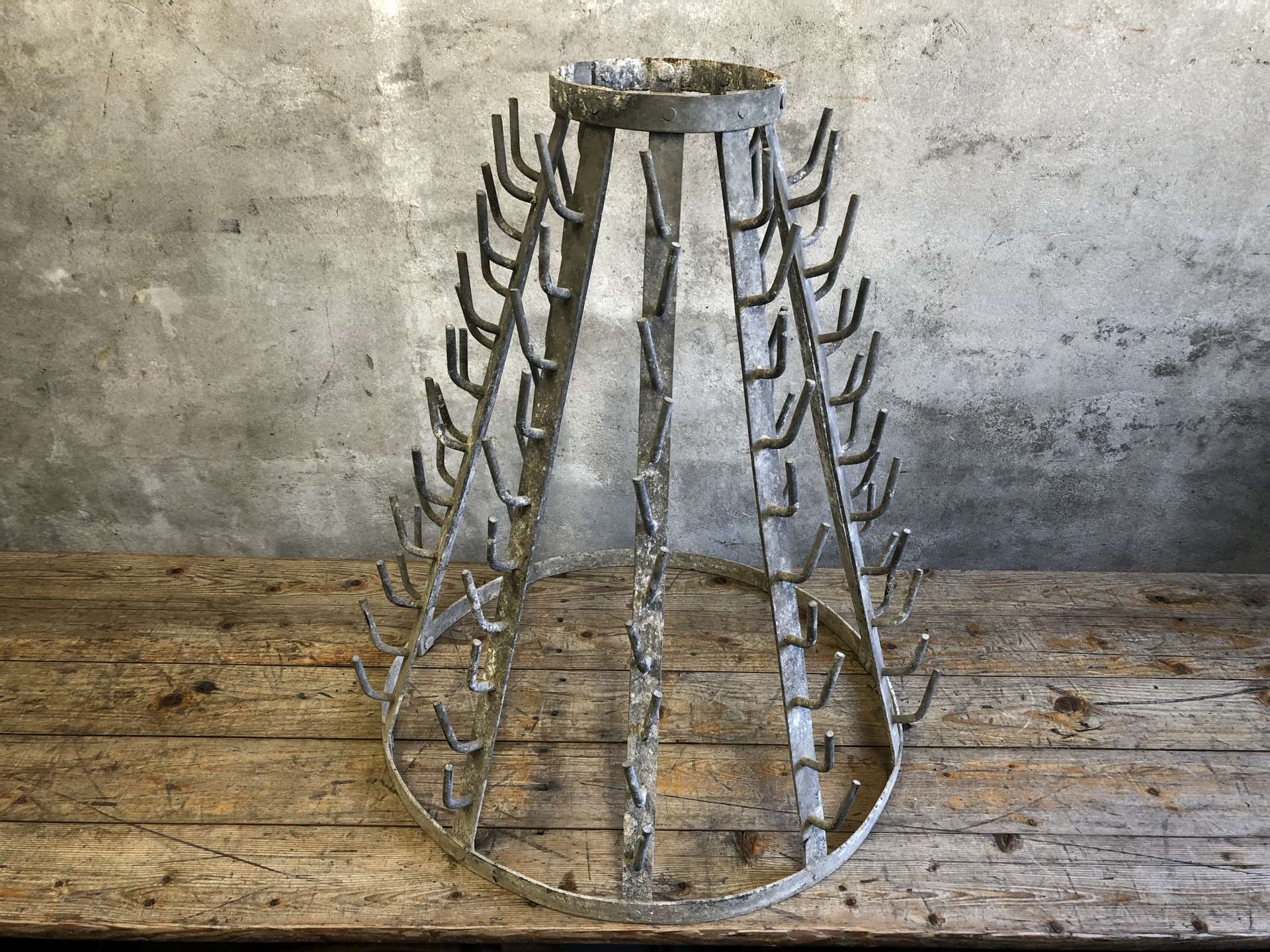 Vintage wijnflesdroogrek (égouttoir a bouteilles) uit Frankrijk.