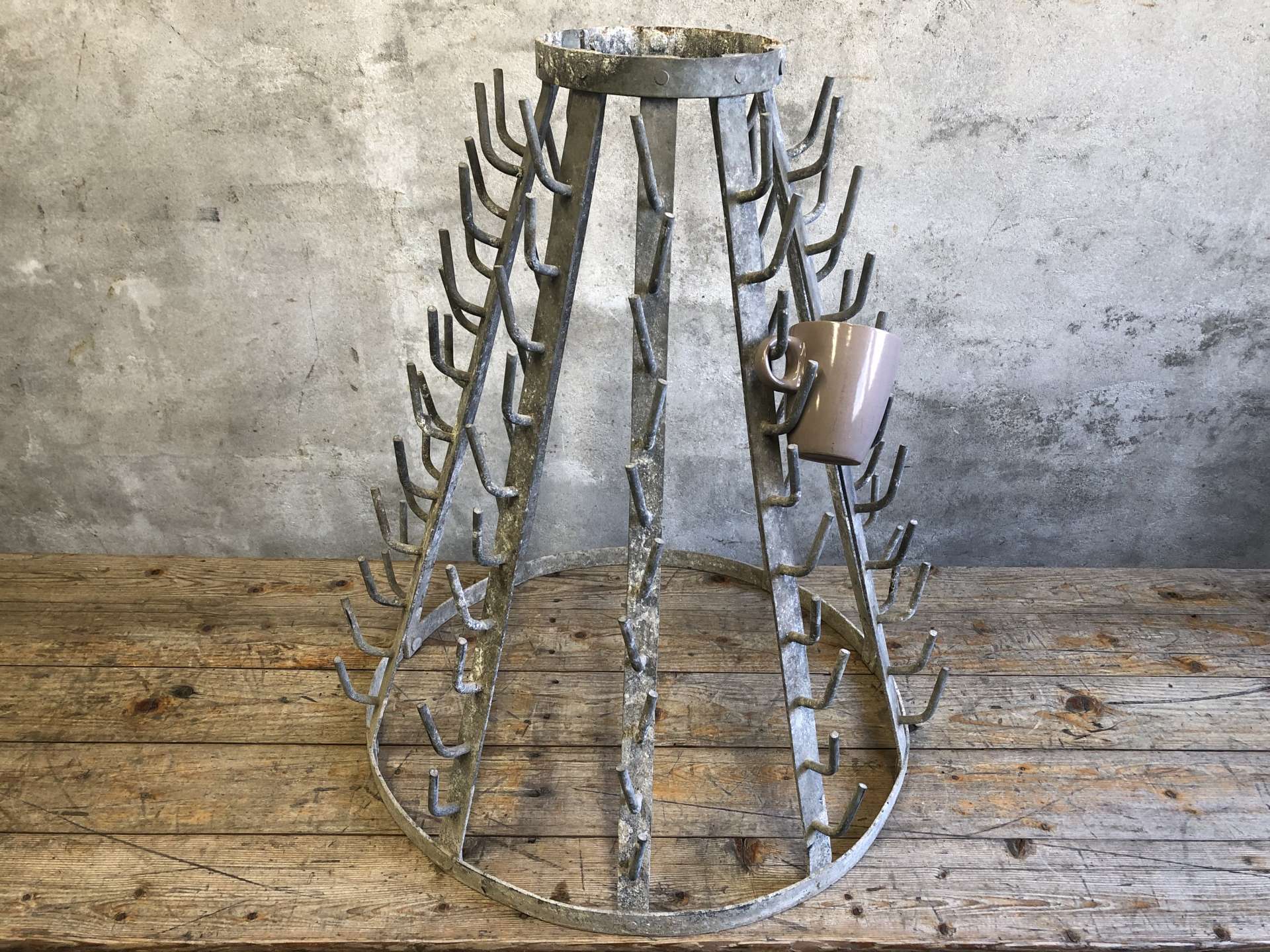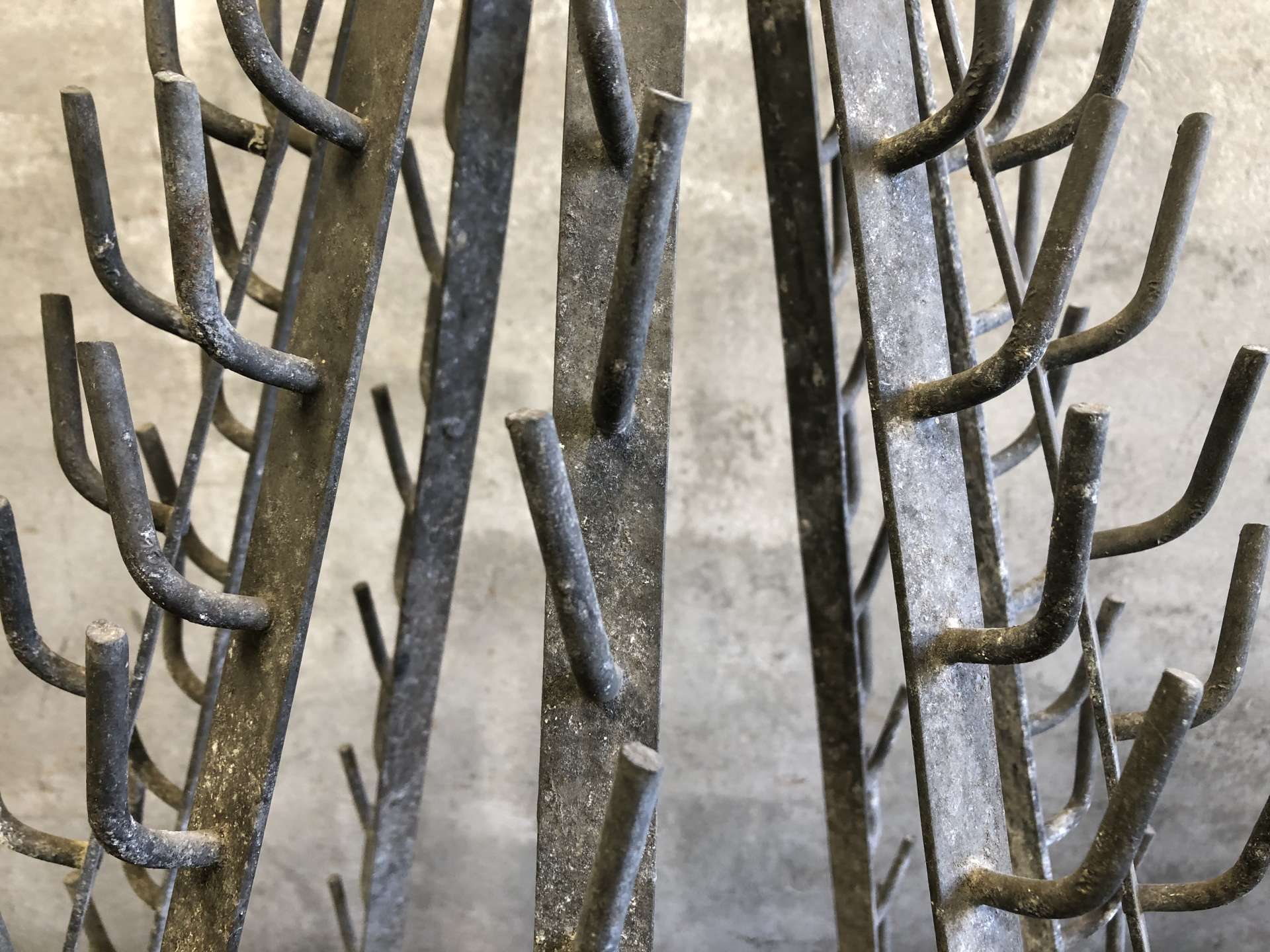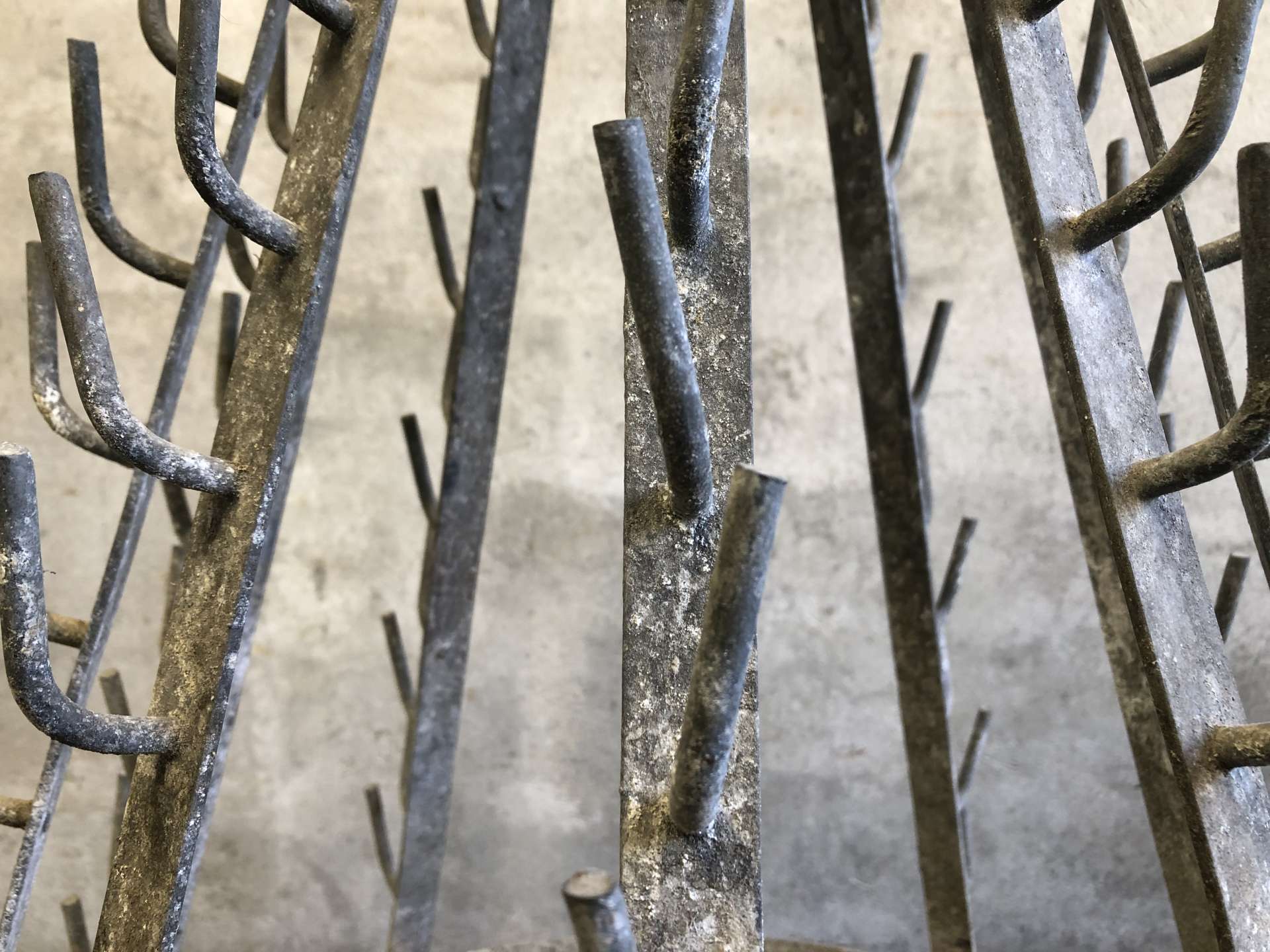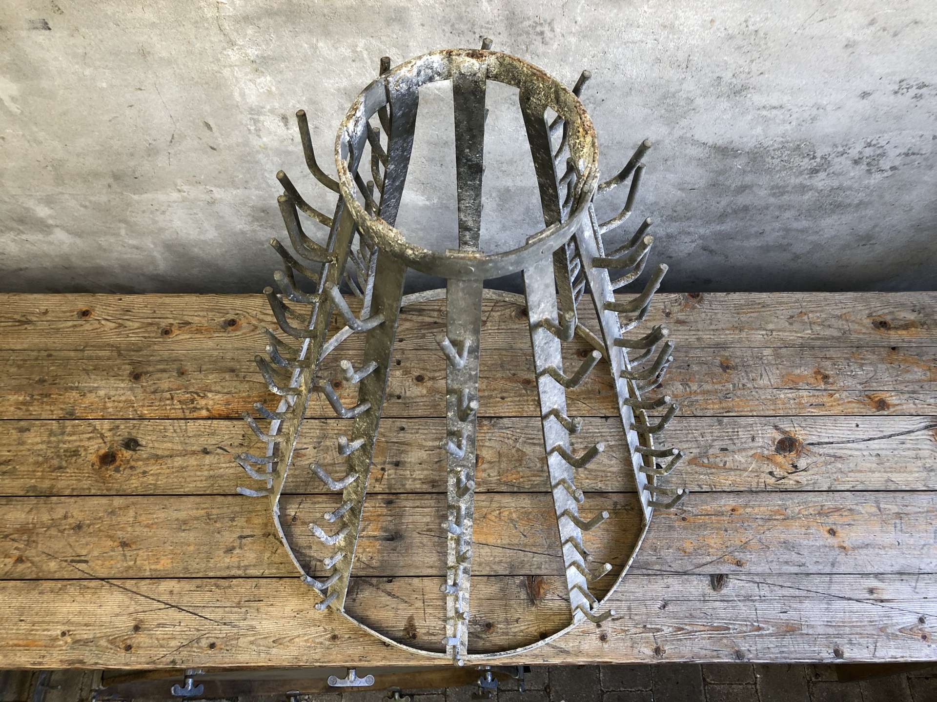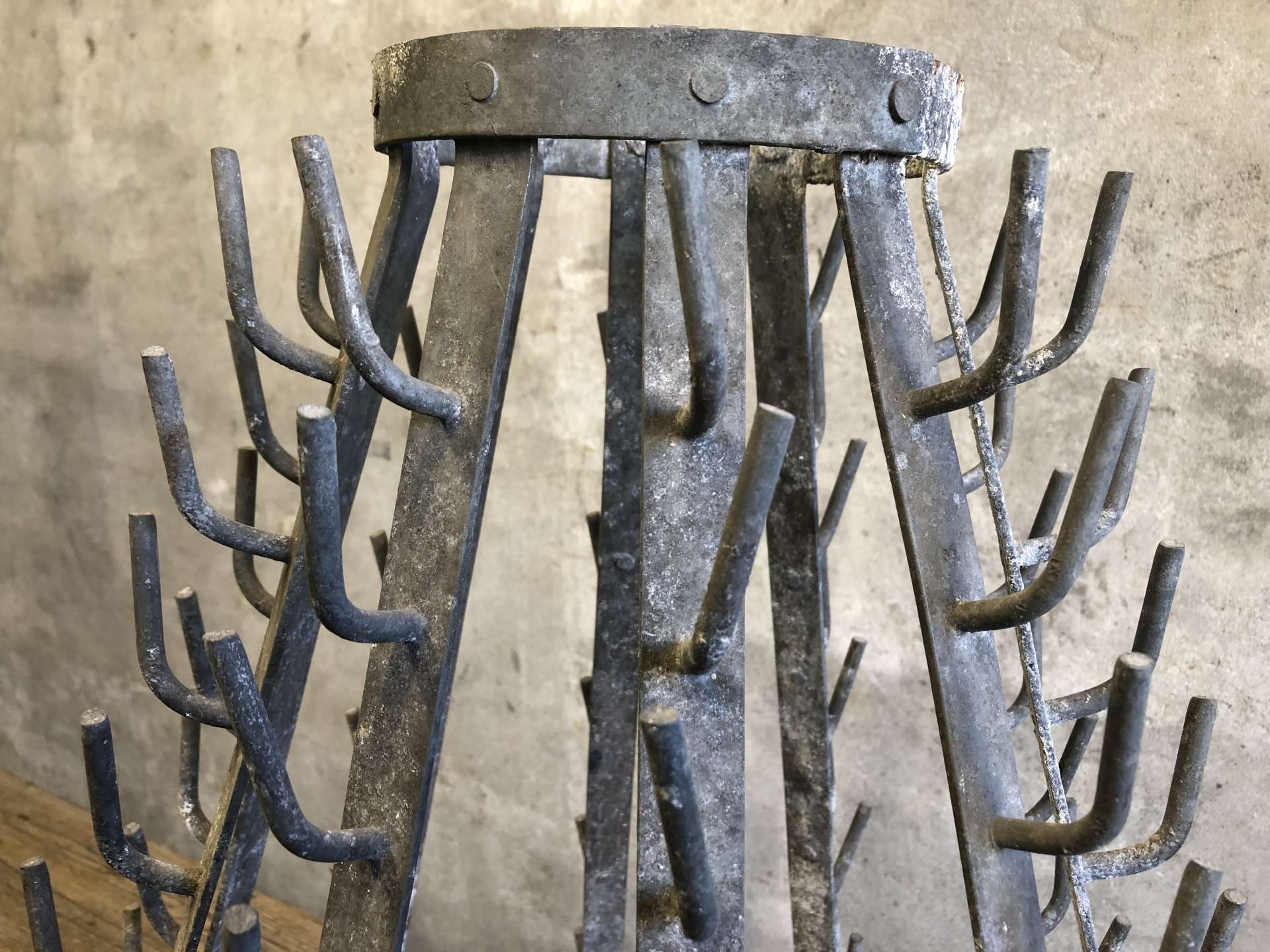 Vintage wijnflesdroogrek (égouttoir a bouteilles) uit Frankrijk.