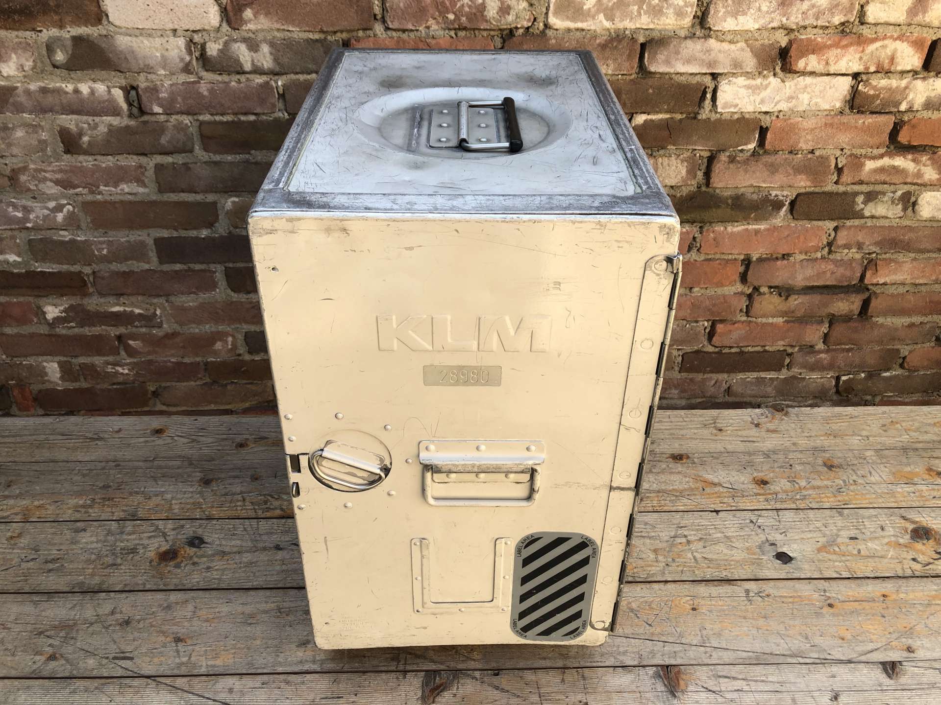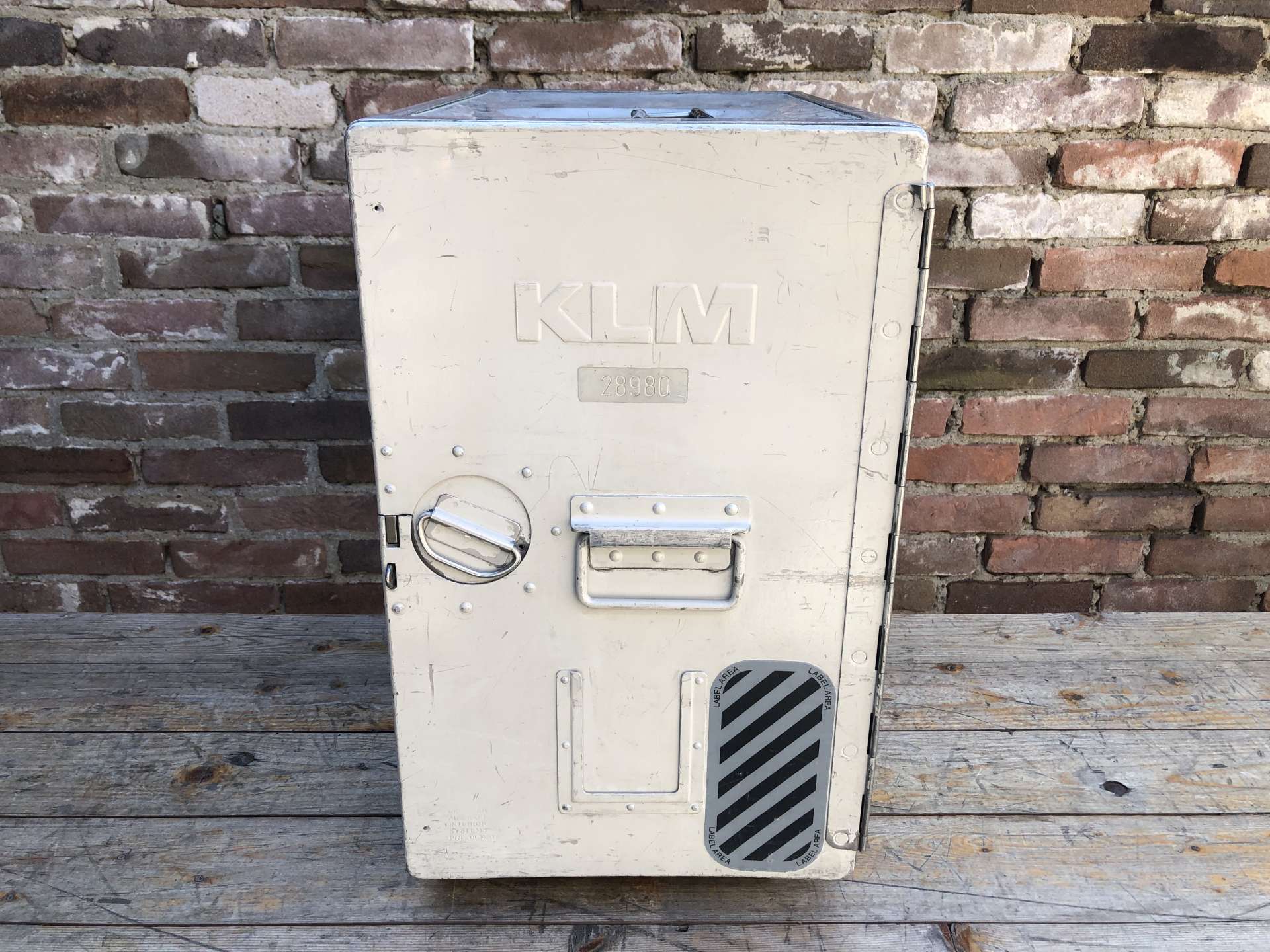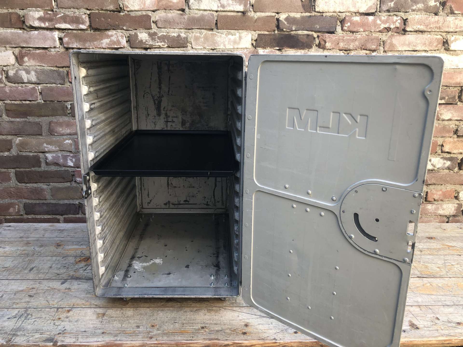 KLM locker voorzien van een origineel dienblad van KLM als plankje.