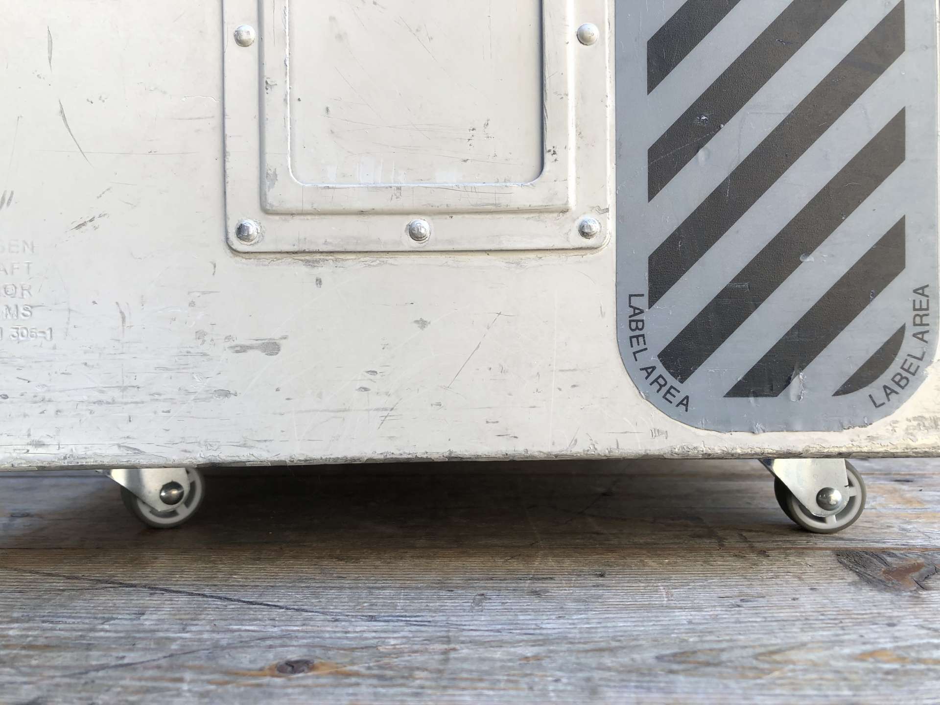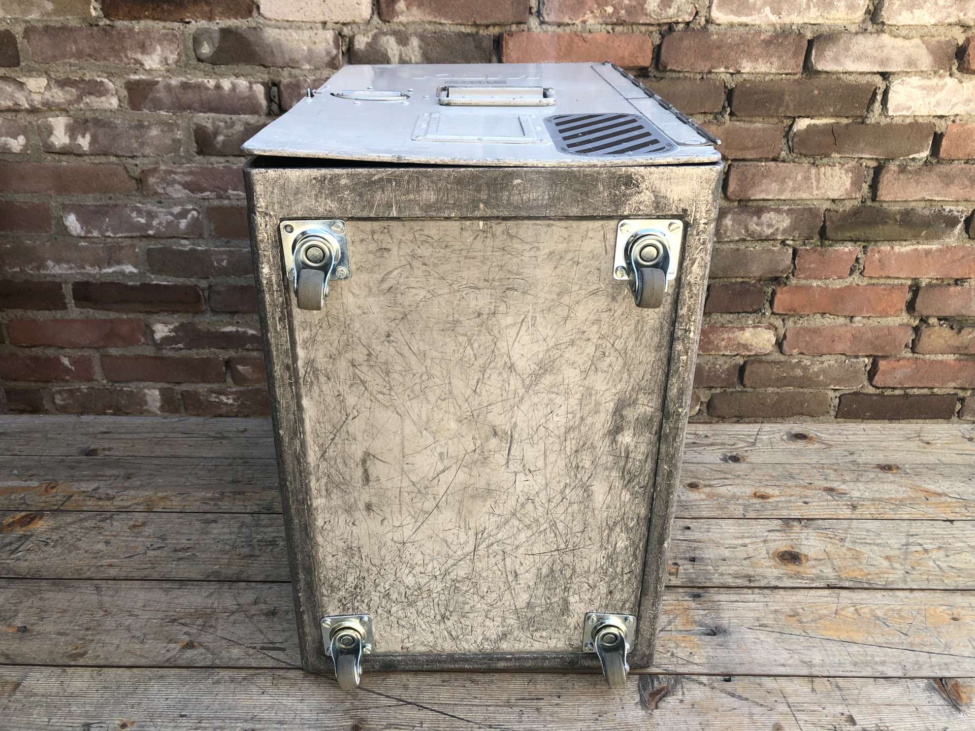 De vorige eigenaar heeft de catering box voorzien van 4 wieltjes.