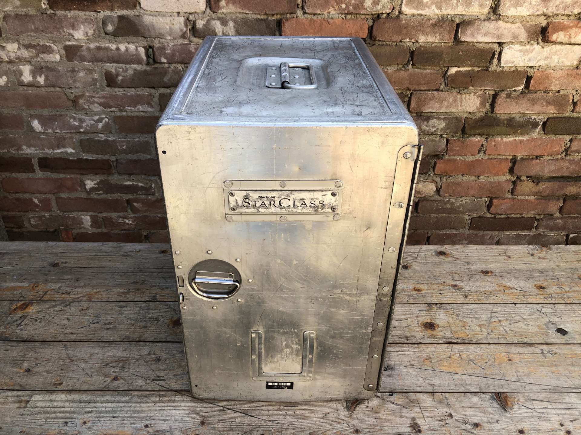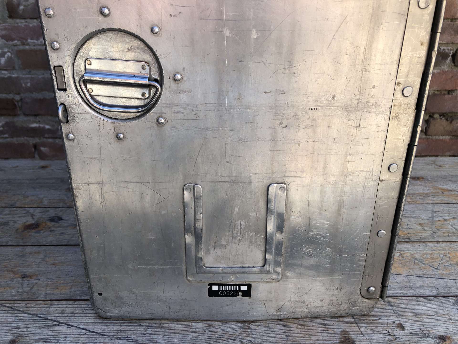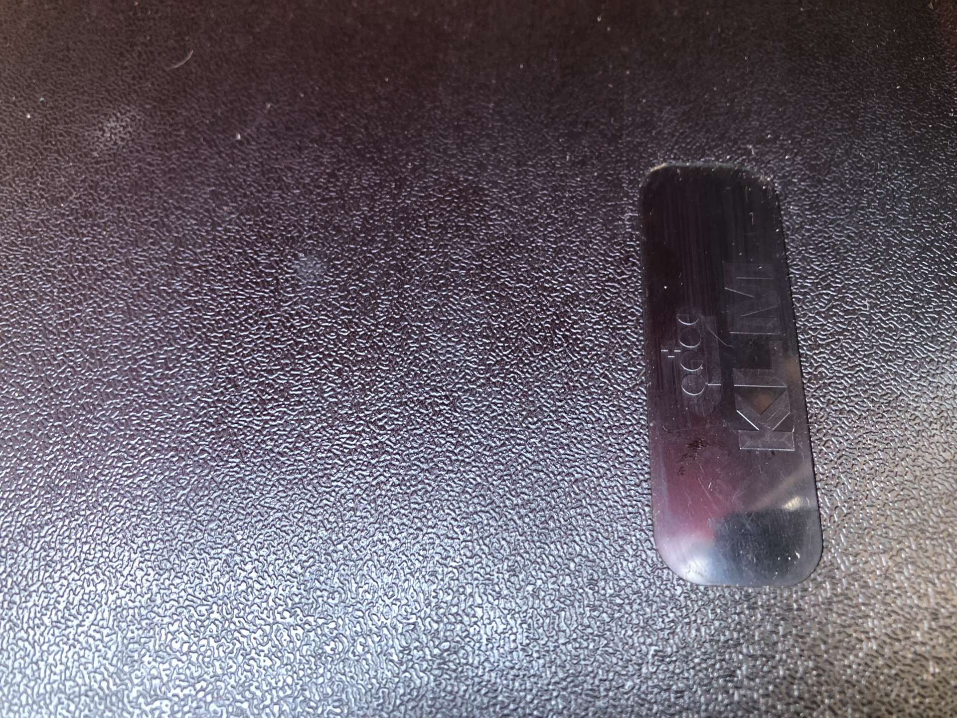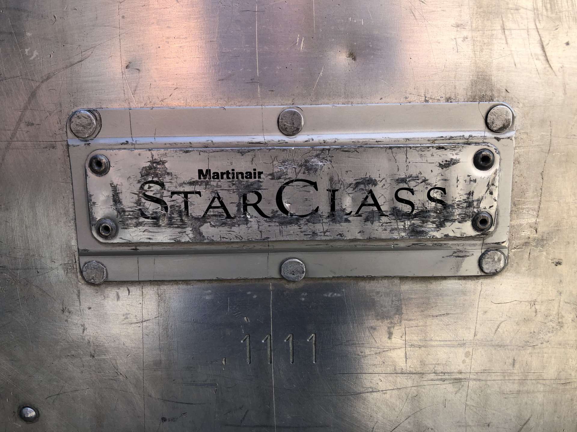In het kastje zit 1 lade van Martinair en een zwart dienblad van KLM.