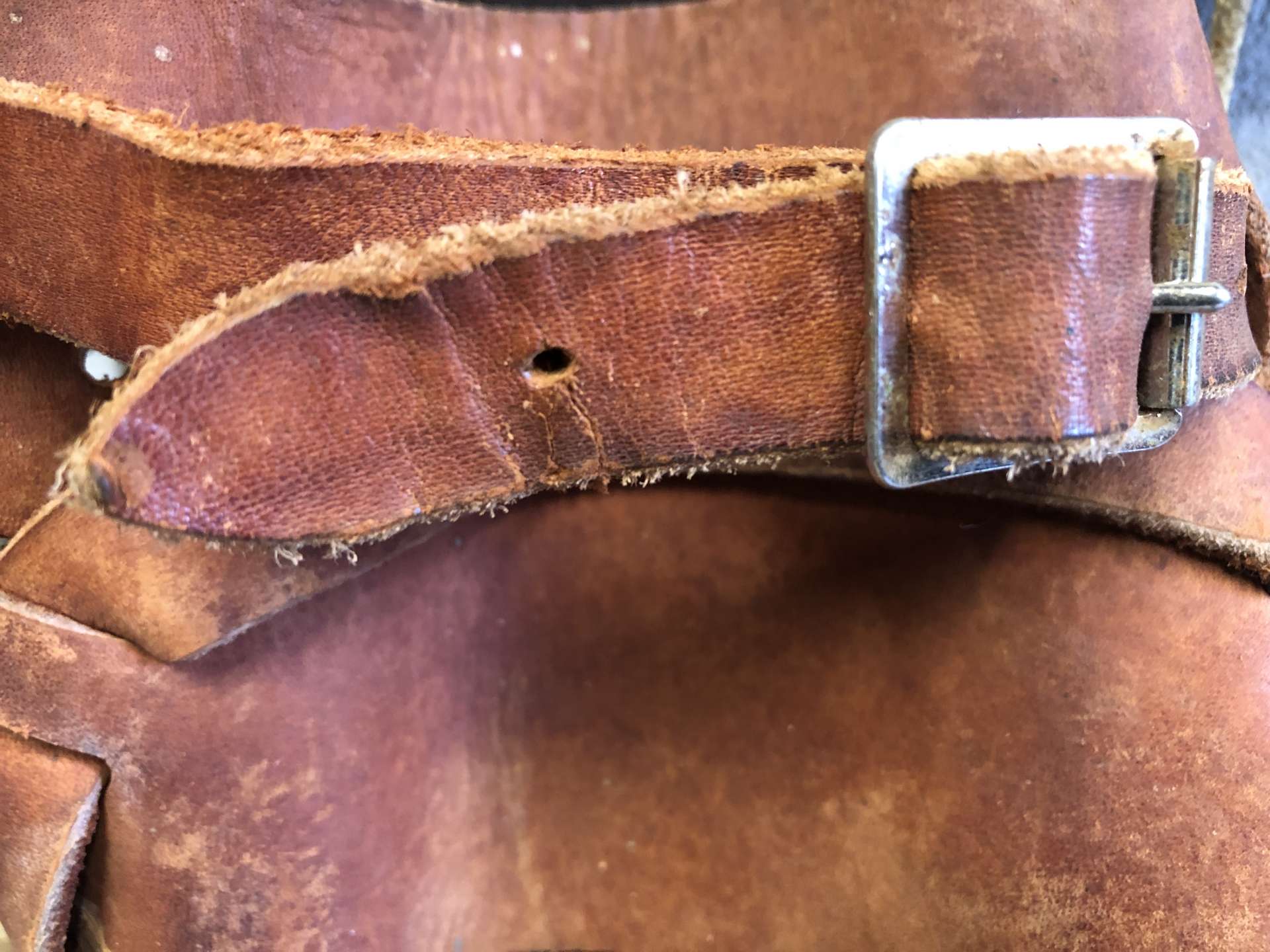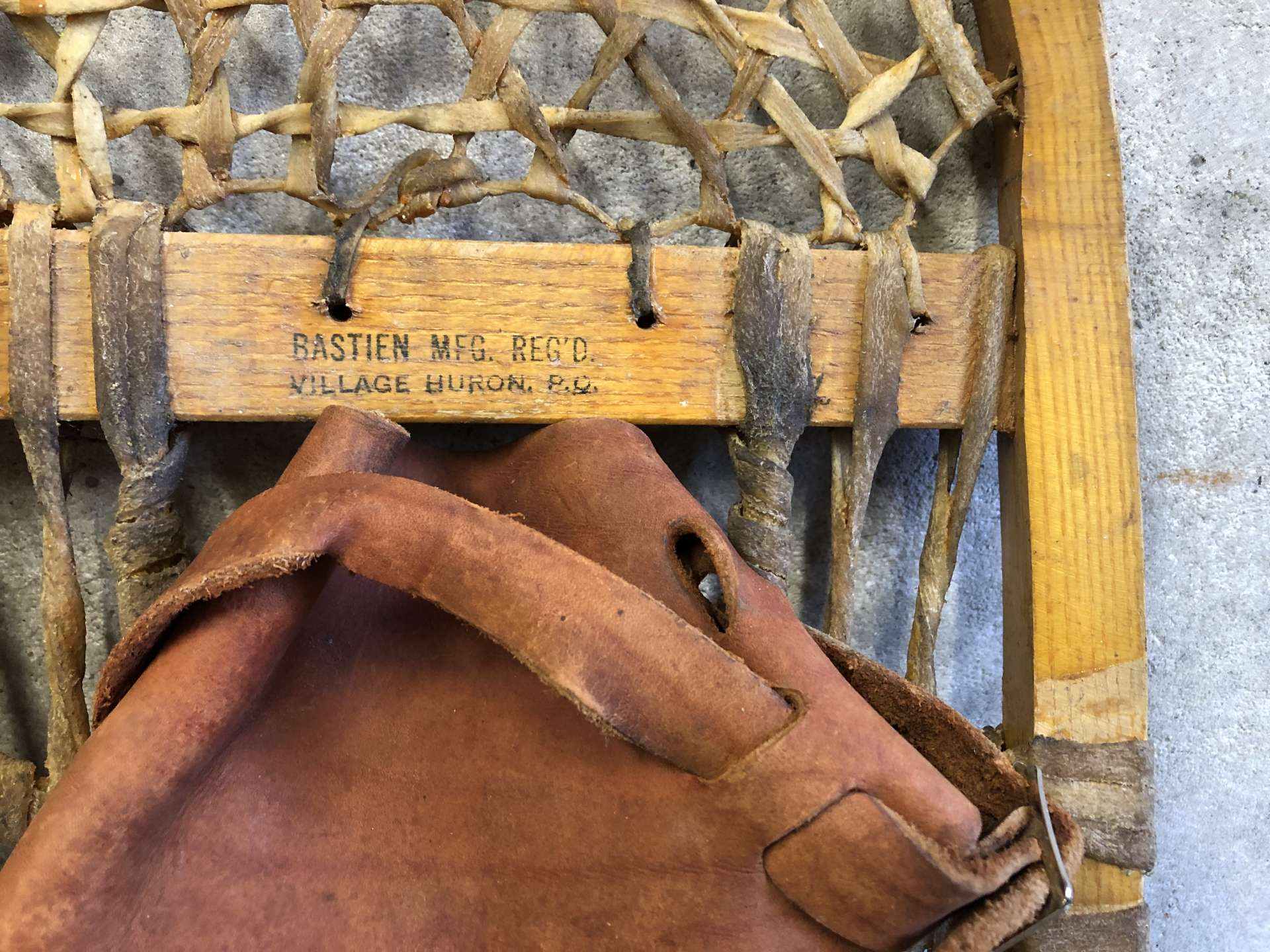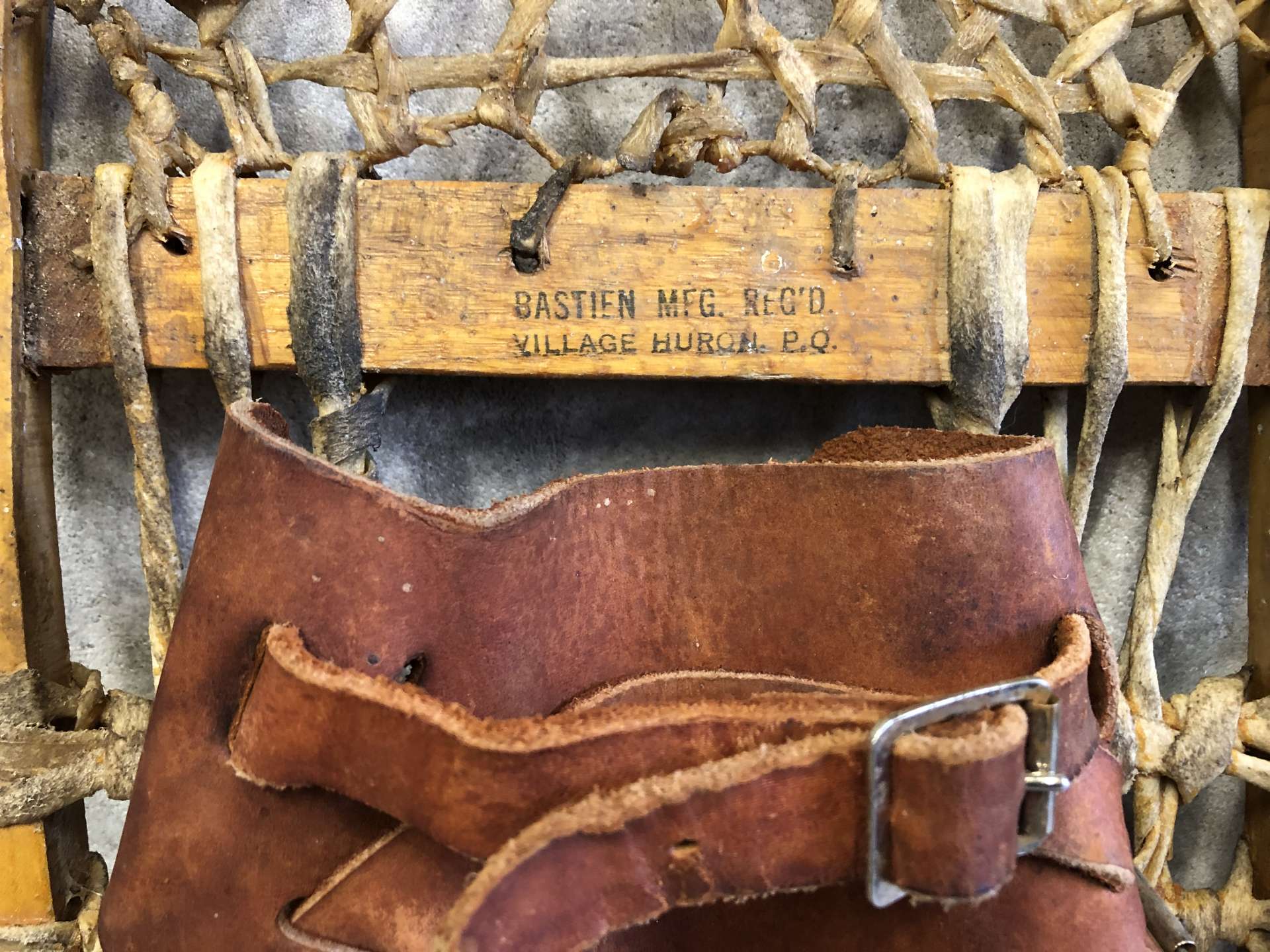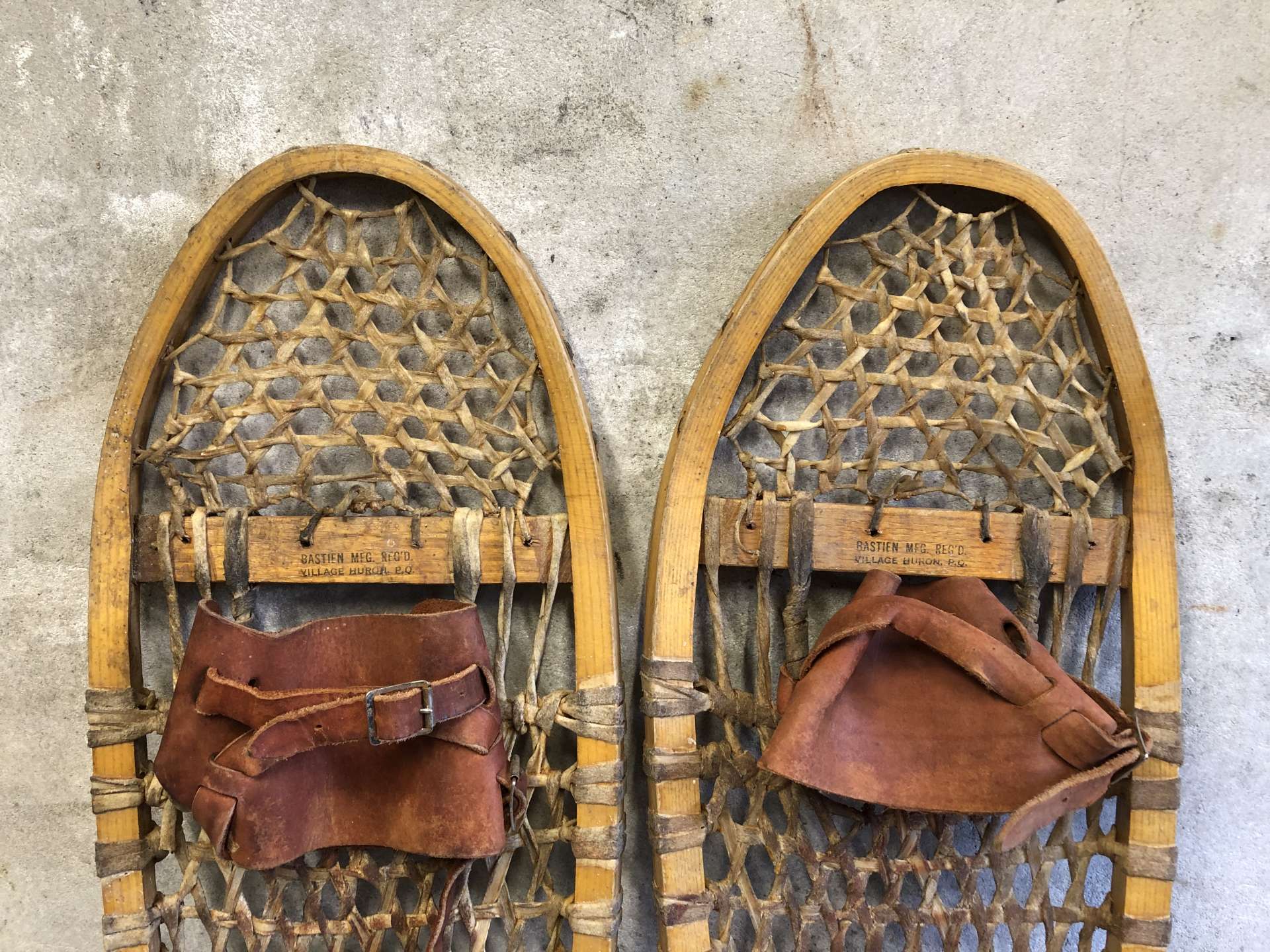 Set vintage sneeuwschoenen van hout en met lederen riempjes afkomstig uit Canada.